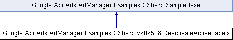 This code example deactivates all active labels. To determine which labels exist, run GetAllLabels.cs. This feature is only available to Ad Manager 360 networks. More...