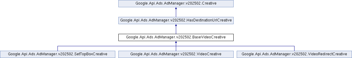 Inheritance diagram for Google.Api.Ads.AdManager.v202502.BaseVideoCreative: