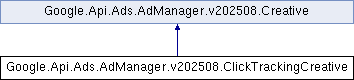 A creative that is used for tracking clicks on ads that are served directly from the customers' web servers or media servers. NOTE: The size attribute is not used for click tracking creative and it will not be persisted upon save.